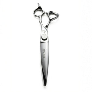"The Ichiro Chomper Wide Hair Cutting Shears stand out in their ability to deliver clean, precise cuts and create seamless blunt lines, thanks to their innovative wide blade design and premium 440C steel construction. These shears truly shine in slide cutting techniques, with the convex slicing blade allowing for incredibly smooth, effortless strokes that glide through hair. The thoughtfully designed offset handle enhances the shears' performance in scissor-over-comb work."