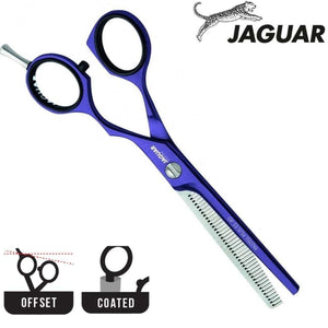 These Jaguar Pastell Plus Viola Thinning Scissors are an offset design with 40 thinning teeth with fine V-teeth serration for a pleasantly smooth feeling and a precise cut, using German Chrome steel, stylish design and engineered to be well-performing for any hairdresser or barber.