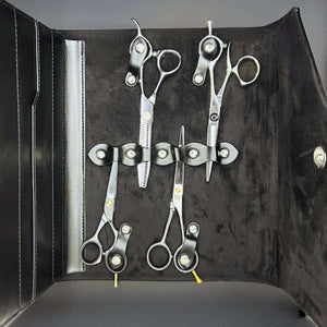 The Juntetsu Professional Scissor Case is the perfect way to protect your hair scissor investment! A anti-scratch authentic black leather case that protects your hair scissors and accessories from physical damage and the elements
