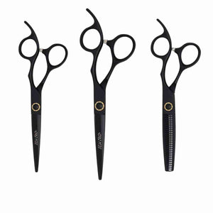 This set includes 2 pairs of Ichiro Matte Black Cutting Shears and a pair of 6" Thinning Shears.