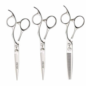 This set comprises a pair of Ichiro Ergo Precision Cutting Shears, a pair of Serrated Cutting Shears, and a pair of Thinning Shears.