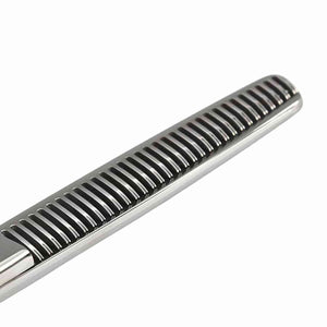 Our 6.0" texturizing shears feature 30 precision-milled V-shaped teeth with an ideal 20-25% cut ratio – the perfect balance for versatile texturizing without removing too much at once.