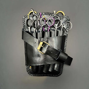 "The Shadow Belt Holster is exactly what I've been looking for! That front belt design is genius.. keeps everything properly secure even during the busiest days. The black stitching is really sturdy and the leather quality is outstanding. Love how I can fit all my go-to scissors plus my combs and clips. The rope belt is so comfy you forget your wearing it, and the brass buckle gives it that premium look. Perfect for when your running between clients.. everything stays exactly where you put it!"